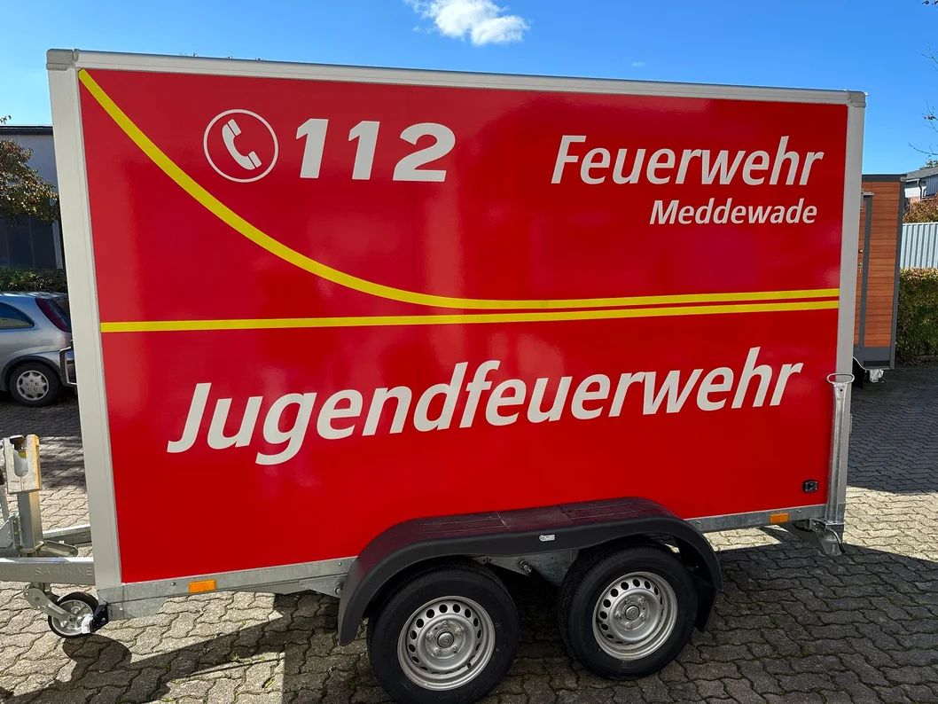Der Anhänger der Jugendfeuerwehr Meddewade dient dem Transport von Übungsmaterial und Ausrüstung. Ob Schläuche, Strahlrohre, Absperrmaterial oder Zeltausrüstung – mit dem Anhänger sind wir bei Diensten, Übungen und Veranstaltungen flexibel und mobil.